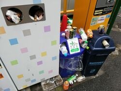 飲料メーカーの頭を悩ませているもう1つの課題が、自動販売機の隣に設置されている「空容器回収ボックス」だ。本来は販売したペットボトルを資源として回収する目的で設置されているが、異物の混入が後を絶たない。