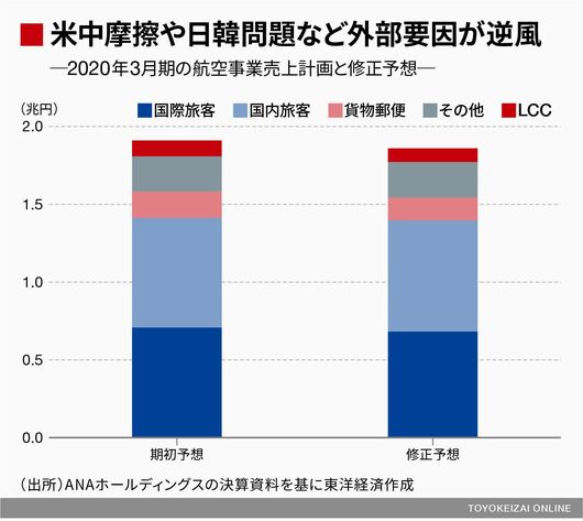 ANAにとって最大の誤算は、上期の売上計画を120億円下回った国際貨物事業だ。ANAの貨物事業は前2019年3月期に1250億円の売り上げを計上している。今年7月には日系エアライン初導入の大型貨物専用機「ボーイング 777F」を中国線に導入するなど拡大基調にあったが、米中貿易摩擦の影響を受け、中国発着の貨物需要が下振れしてしまったのだ。