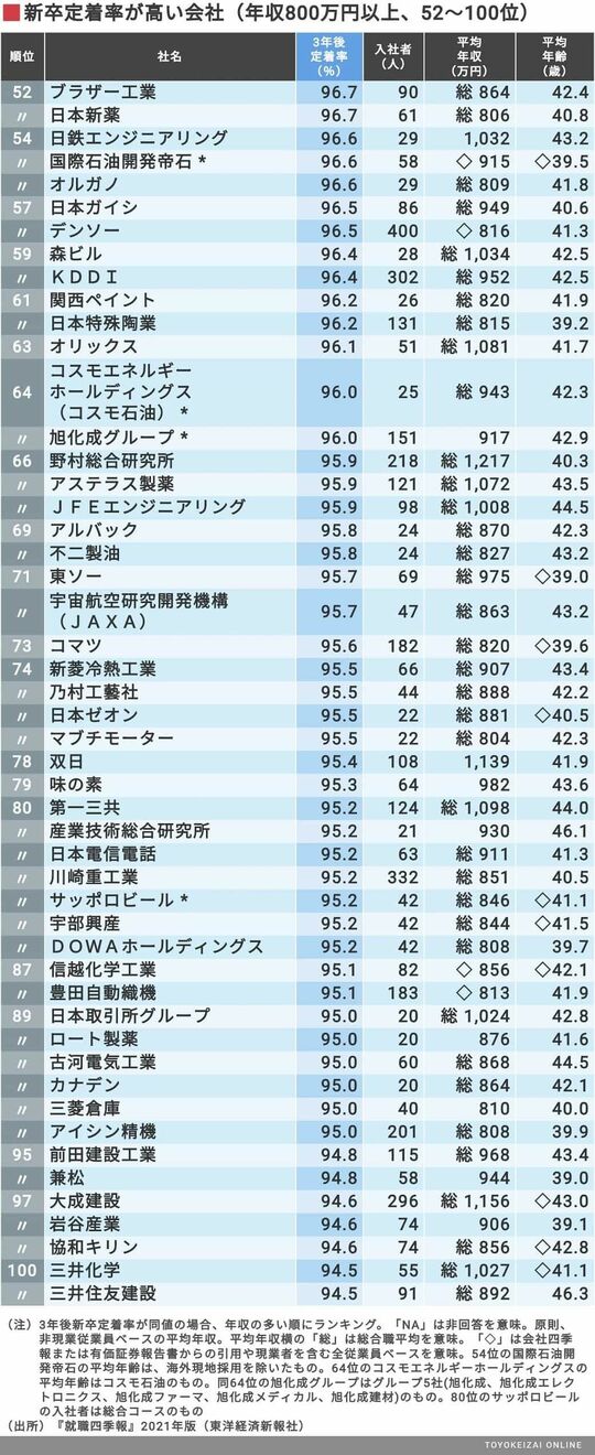 キャリア・教育 #就職四季報プラスワン 前の記事 次の記事 「給料が高く新卒が辞めない会社」ランキング 平均年収800万以上で3年内定着率上位202社 4分で読める 公開日時:2019/12/20 05:10 小村 圭 東洋経済データ事業局 フォロー 1/6 PAGES 2/6 PAGES 3/6 PAGES 4/6 PAGES 次ページが続きます:【給料が高く新卒定着率が高い会社101~150位】 5/6 PAGES 6/6 PAGES