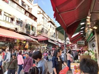 鉄道駅から徒歩5分ほど歩くと、生鮮食品や花、雑貨を売る地元の市場に到着する。広東語と北京語が飛び交う市場では、英語はほぼ通じない。