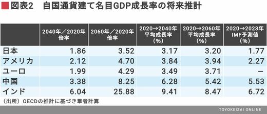 ただし、インドの場合にもOECDの予測値は、IMFの予測値と比べるとかなり低くなっています。