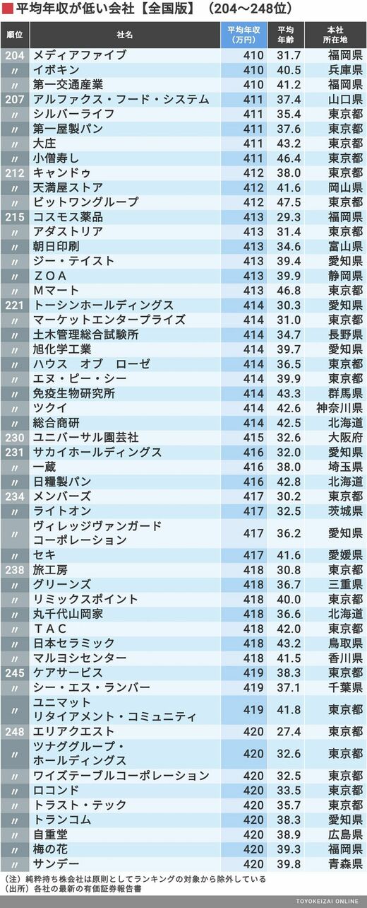 政治・経済・投資 #賃金・生涯給料ランキング 前の記事 次の記事 平均年収「全国ワースト500社」最新ランキング 平均年収400万円未満の会社は156社だった 2分で読める 公開日時:2020/01/17 05:05 東洋経済オンライン編集部 フォロー 1/11 PAGES 2/11 PAGES 3/11 PAGES 4/11 PAGES 5/11 PAGES 6/11 PAGES 次ページが続きます:【251~300位は?】 7/11 PAGES 8/11 PAGES 9/11 PAGES 10/11 PAGES 11/11 PAGES