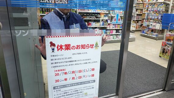 ローソンは2020年元日の休業実験に踏み切る。具体的には2019年12月31日から2020年1月3日の間、25都道府県の102店舗が休業する。