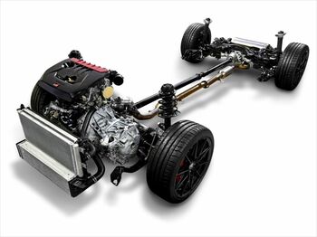 サスペンションは、フロント:ストラット/リア:ダブルウィッシュボーンを採用。ブレーキは、対向ブレーキキャリパー(フロント:4ポッド、リア:2ポッド)+大径ローター(フロント:2ピース、リア:ドラムインディスク)が奢られる。