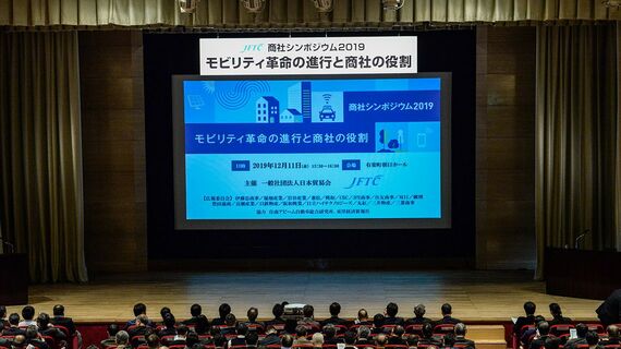 自動車ビジネスにも携わった経験のある日本貿易会の中村邦晴会長は、ここ数年のモビリティ革命のインパクトは「これまでの体験を質量ともに圧倒している」と語った。モビリティサービスは、とくに公共交通インフラが脆弱な地方において、車の運転が難しくなった高齢者の外出時の移動手段として高齢化に伴う課題の1つを解決し、電気自動車の普及は温暖化対策にも貢献すると、前向きなチャンスとして側面を強調。就業人口546万人の国内自動車産業をモビリティ革命後も基幹産業として維持・発展することは、日本経済の発展に不可欠とした。同会がキャッチフレーズに掲げる「未来をカタチに 豊かな世界へ」を体現できるモビリティ革命の推進のため、中村会長は「商社業界も尽力したい」と述べた。