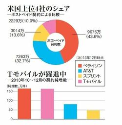 一方のスプリントは苦しい。昨年10~12月に契約数が増加に転じたものの、その中身は利益貢献の薄いプリペイド契約が中心だった。