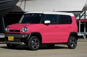 ハッチバック車的な面構成だった旧型に対し、新型はSUVっぽい面の作り方になったという感じがした。この進化の過程はジムニーに似ている。ジムニーはプロユースであり、ライフスタイルを提案するハスラーとはコンセプトが違うという説明もあったが、四角いクルマを好むトレンドを参考にしたという点では共通しているだろう。