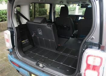 新型はホイールベースも35mm長くなっており、その分後席空間が広がっているとのことだが、旧型も身長170cmの筆者が楽に足を組める空間はあったので、大差があるとは感じなかった。その後方にある荷室は、取り外しできるアンダーボックスがついたことがニュースで、アウトドアシーンで重宝しそうなアイテムだった。
