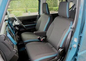 シートは旧型ではブラックのファブリックに3色から選択可能なパイピングを組み合わせるという英国車のような仕立てだったが、新型は「クロスビー」と同じように、ファブリックの両サイドにインパネと同じ3タイプの色を入れる手法に変え、ブラックの部分には細かい模様を入れた。