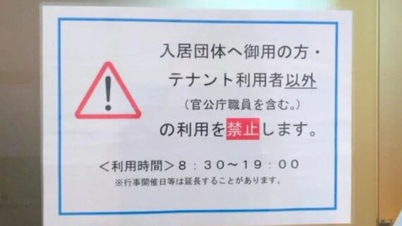 記者が訪れたのは、冷たい雨が振り注ぐ寒い日だった。こんな日でも、喫煙者たちは外で一服しているのだろうか。外に出てみると、喫煙所があるはずの場所に、「敷地内・庁舎内全面禁煙」と書かれた貼り紙が貼られたポールが設置されていた。