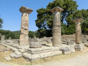 古代オリンピックの起源は諸説あるが、ヘラクレスらが登場する神話ではなく現実的で有力なのは、紀元前8世紀に疫病の蔓延に困ったこの地方の王イフィトスが、アポロンの神託を受けて、当時ギリシャに多くあった都市国家(ポリス)間の争いをやめて、農閑期の8月に競技会を始めたのが起源という。