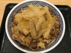 ねぎだく牛丼は、牛丼の並盛に通常の4倍の玉ねぎを加えたもの。牛肉と玉ねぎの割合が1:2となる。