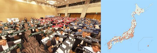 右:地域の顧客企業を対応するビルダー加盟店ネットワークは北海道から沖縄まで全国展開する