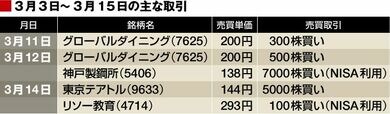 【3月3日(月)】今日から3月相場スタート! しかし、日経平均は174円安で寄り付き、9時51分には397円安の1万4443円まで下げたが、大引けでは戻して188円安の1万4652円で引けた。ウクライナ情勢緊迫化やビットコイン取引所マウントゴックスの民事再生法申請、北朝鮮ミサイル発射、中国昆明無差別殺傷事件など、悪材料に事欠かない。