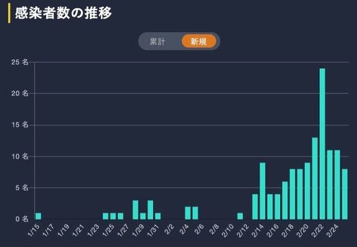 日ごとの新規感染者数の推移を見ると、2月13日ごろから増加傾向にあることがわかる。