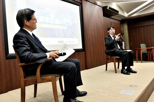 岡本英男学長(以下、岡本) 若手の論客として注目されている中野さんは今、渋沢栄一に関心を持たれていると伺いました。渋沢は、東京経済大学にとっても設立委員の一人に名前を連ねていて、縁のある人物です。