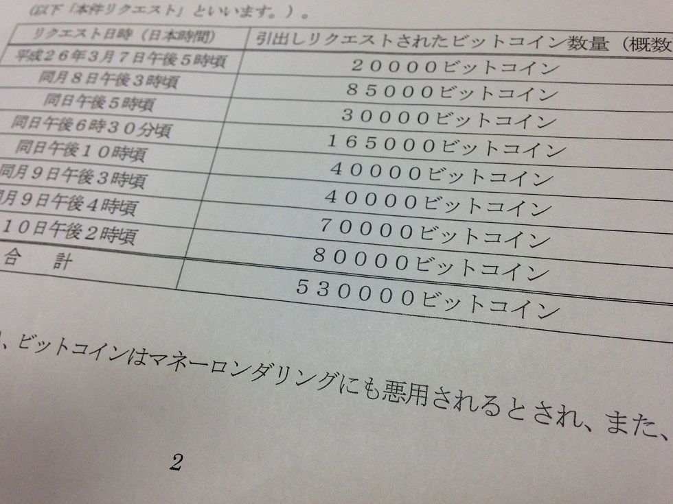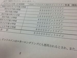 上申書によると3月上旬になって合計53万ビットコインが引き出されたという
