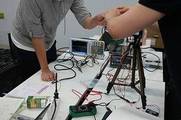 実際に講義の様子を見ると、大きなテーブルの上にセンサーやモーターを並べて作業をしているグループなどもある。「修了制作についても、業務などで直面している実問題を持ち込み、マンツーマン指導で制作・研究を行います」と鷲崎氏は話す。学んださまざまな手法やツールを総合的に活用する場となるが、「成果が出なければやり直しもあります」というから、決しておざなりなものではない。