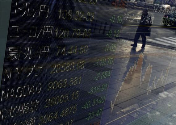 3月9日、寄り付きの東京株式市場で、日経平均は前営業日比406円44銭安の2万0343円31銭となり、大幅続落でスタートした。都内の株価ボード前で1月撮影(2020年 ロイター/Issei Kato)