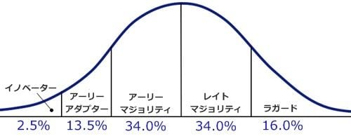 この辺りをわかりやすくする説明するために、エベレット・M・ロジャース氏の「イノベーター理論」を拝借したいと思います。