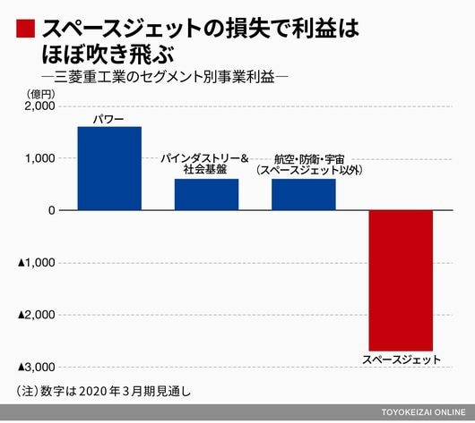 2020年3月期末までに過去に計上していたスペースジェット関連の資産1300億円をすべて減損処理する。今期の開発費1400億円と合わせた関連損失は2700億円にのぼる。