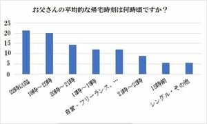 育児のポータルサイト「こそだて」(2018年)によると、パパの帰宅時間のトップは22時以降(21.4%)、19~20時が2位(20.0%)でした。22時以降の帰宅時間では、すでに子どもを寝かしつけた後。20時近い場合は、ご飯を食べ終えて、お風呂に入ったり、入り終えているころだと思います。