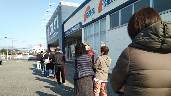 大行列を作っていたスーパーは、駅近ということもあり、地元の人が最もよく利用している店だ。買い物客はポイントカードも持っているし、そこで買うことが日常になっている。だから、多くの人は真っ先にそこに買いに走ったのだ。