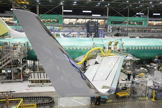 4月1日、米ISMが発表した3月の製造業景気指数は53.7となり、前月から小幅上昇した。写真はワシントン州の旅客機組立工場で2月撮影(2014年 ロイター/David Ryder)