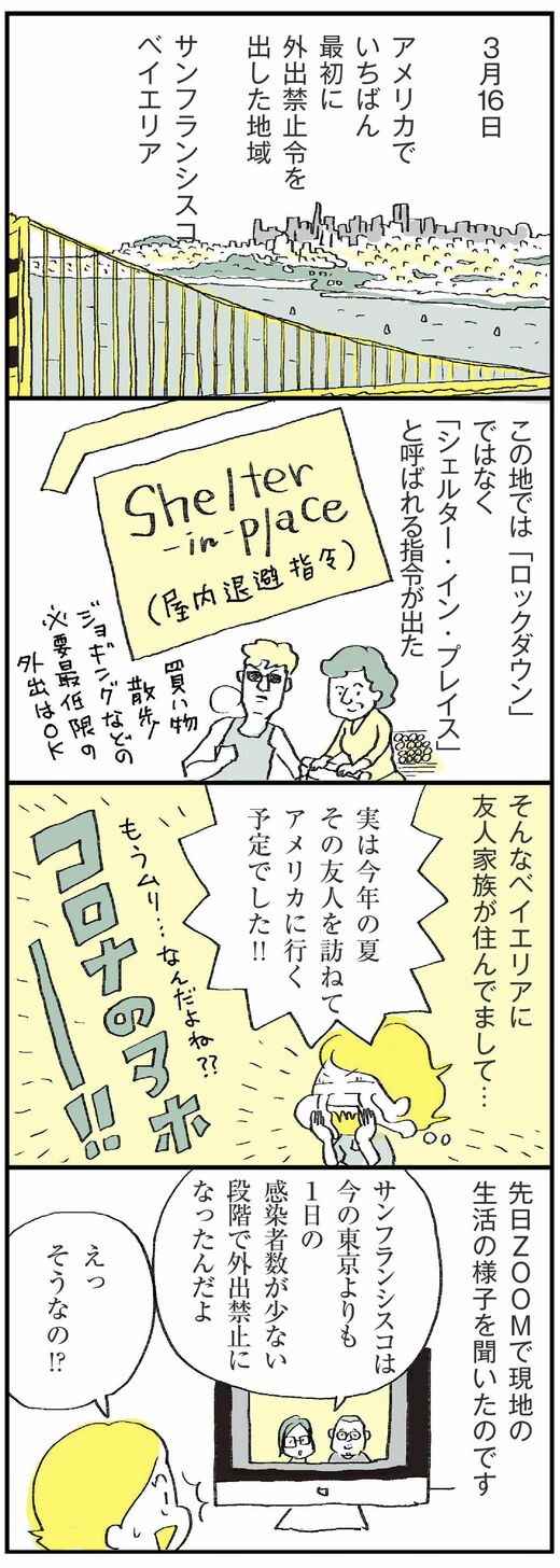 そこでこの連載では、3月16日にいち早く外出禁止令を出したアメリカ・サンフランシスコに住む、ある家族の事例を紹介します。
