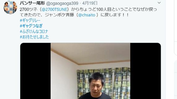 まず最も活発なのは、ツイッターなどで行われている“つなぎ”。芸人たちによる「#ギャグつなぎ」、アーティストによる「#うたつなぎ」、新旧アイドルによる「#アイドルつなぎ」「#アイドルうたつなぎ」、スピーディーに展開される「#自撮りつなぎ」、ホリプロ所属タレントによる「#お家で小さな幸せしりとり」、吉本芸人による「#吉本自宅劇場」などがあります。