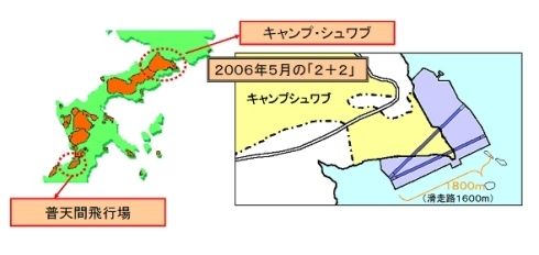 普天間基地とは、宜野湾市の中心部に位置し、ヘリコプターを中心とする海兵隊航空部隊の基地となっているものである。そのヘリの運用は続けなければならないため、普天間返還には代替施設を沖縄県内に新設することが付随条件となっていた。