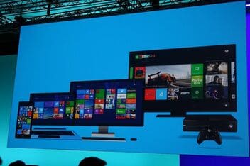 ひとつめの柱は「ユニバーサル・ウィンドウズ・アプリ」を定義し、パソコン用はもちろん、タブレット、スマートフォン、ゲーム機(Xbox360、Xbox One)でも同じアプリの動作させることを可能にしたことだ。スマートフォンについてはこれから数カ月以内に提供開始予定の「ウィンドウズフォーン8.1」から対応する。