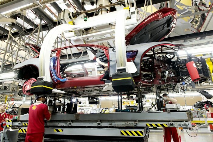 ホワイトボディ(完成した車体骨格)製作からペイント、そしてエンジン製造、最終アッセンブルまで、すべての製造工程を内製化する体制が確立。さらにカロッツェリアなど、外部デザインスタジオとの連携で行われてきたスタイリング開発も内製化が進み、それに対応するデザインセンター棟も新たに完成している。