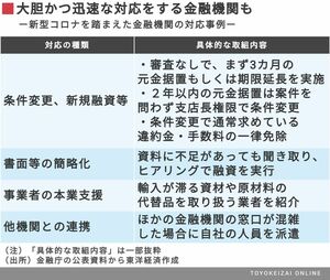 数字だけでなく、個別の対応もヒアリングしている。他の金融機関にも参考になる取り組みは事例集として3月27日と4月20日に公表した。金融機関には、これを見て自分のところでも取り入れてほしい。企業側もぜひ、この事例集をメインバンクに持って行き、「他の金融機関ではこう対応しているから、お願いします」と(融資の)交渉に使ってほしい。