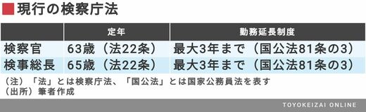 現行法は、以下のような整理になる。極めてシンプルだ。(ただし、後に述べる通り、現行法のもとで勤務延長制度が検察官に適用されるのかは議論がある。)