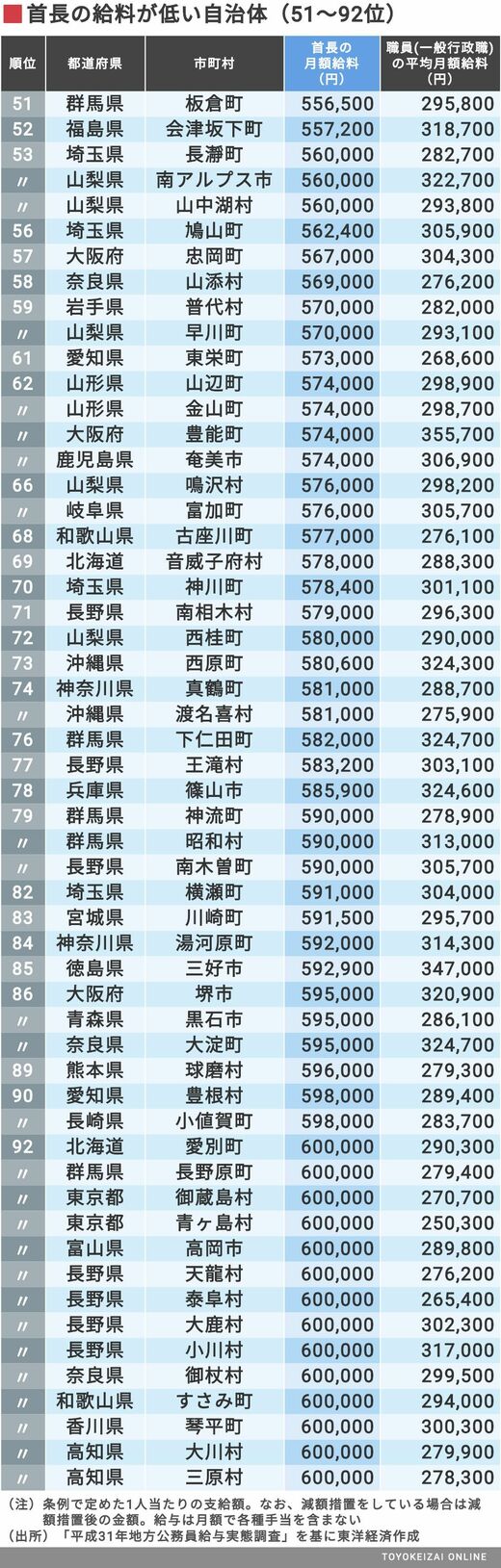 政治・経済・投資 #賃金・生涯給料ランキング 前の記事 次の記事 「市町村長の月給が低い自治体」ワースト500 1位は財政再建中の"あの自治体"で26万円弱 2分で読める 公開日時:2020/05/14 05:00 東洋経済オンライン編集部 フォロー 1/11 PAGES 2/11 PAGES 3/11 PAGES 次ページが続きます:【さらに101〜150位は?】 4/11 PAGES 5/11 PAGES 6/11 PAGES 7/11 PAGES 8/11 PAGES 9/11 PAGES 10/11 PAGES 11/11 PAGES