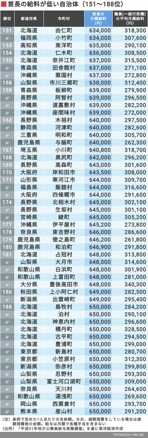 政治・経済・投資 #賃金・生涯給料ランキング 前の記事 次の記事 「市町村長の月給が低い自治体」ワースト500 1位は財政再建中の"あの自治体"で26万円弱 2分で読める 公開日時:2020/05/14 05:00 東洋経済オンライン編集部 フォロー 1/11 PAGES 2/11 PAGES 3/11 PAGES 4/11 PAGES 5/11 PAGES 次ページが続きます:【続いて201〜250位は?】 6/11 PAGES 7/11 PAGES 8/11 PAGES 9/11 PAGES 10/11 PAGES 11/11 PAGES