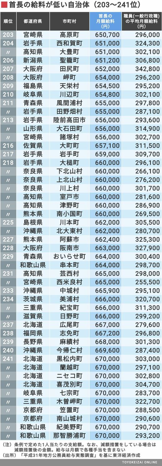 政治・経済・投資 #賃金・生涯給料ランキング 前の記事 次の記事 「市町村長の月給が低い自治体」ワースト500 1位は財政再建中の"あの自治体"で26万円弱 2分で読める 公開日時:2020/05/14 05:00 東洋経済オンライン編集部 フォロー 1/11 PAGES 2/11 PAGES 3/11 PAGES 4/11 PAGES 5/11 PAGES 6/11 PAGES 次ページが続きます:【次は251〜300位】 7/11 PAGES 8/11 PAGES 9/11 PAGES 10/11 PAGES 11/11 PAGES