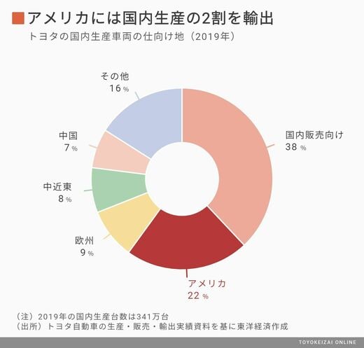 そこで焦点になるのは最大の仕向地であるアメリカへの輸出だが、現地生産よりも輸出を優先するわけにはいかない。というのも、アメリカ国内にある工場が止まっている状態で、日本から完成車をどんどん輸出すれば、現地で反感を買うのが目に見えている。つまり、国内工場の減産を緩和し操業度を引き上げるためにも、まずアメリカの現地工場を再開する必要があったのだ。