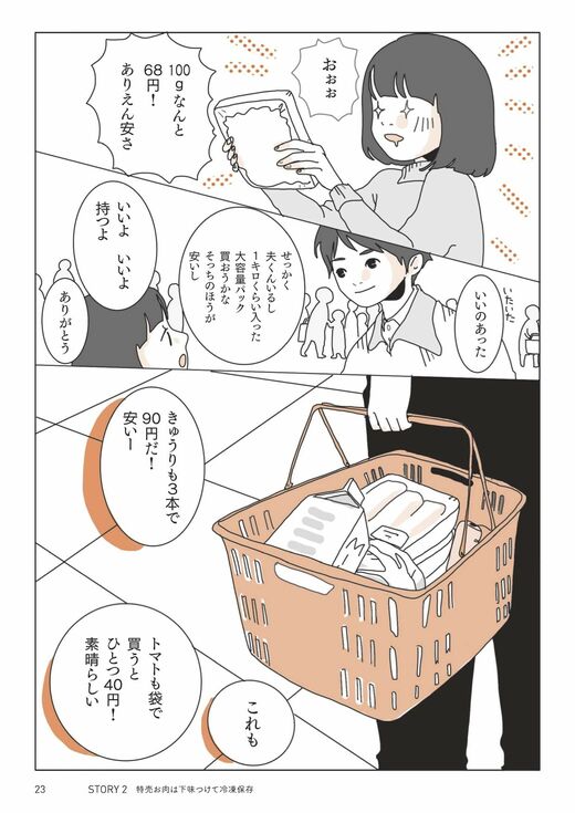 いつもはお値段ひかえめの鶏肉がメインですが、特売の日は豚肉を大量に買います(画像:『月たった2万円の帰りが遅くてもすぐ作れちゃうスピードふたりごはん』より)