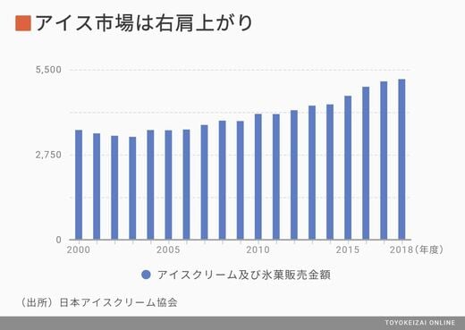 かつてのアイス市場は、記録的な猛暑で需要が伸びた1994年度の4296億円がピークで、それを上回る年は20年近くなかった。ところが2013年度に4330億円と記録を更新すると、近年は毎年のように過去最高を更新してきた。