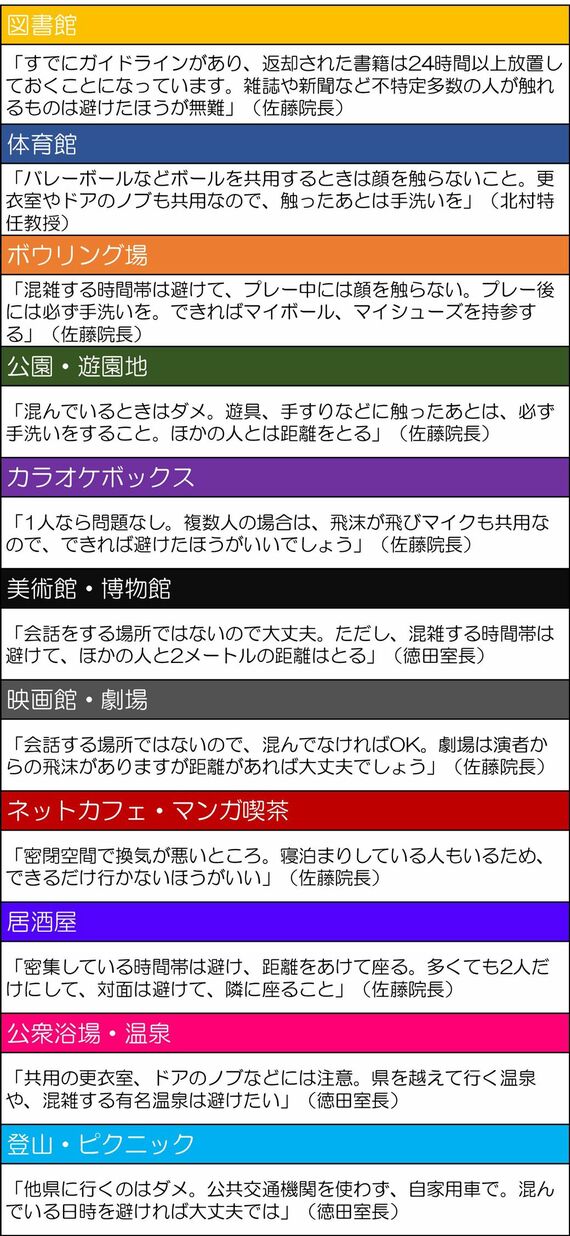 「パチンコ店は基本的には、会話をする場所ではないので、換気をして、ゴム手袋をすれば大丈夫だとは思います。しかし、ライブハウス、クラブなどは声を出したり、会話をするところなので、飛沫が非常に危険です。スポーツクラブも密集しやすいし、器具や更衣室を共用するので、解除はなかなか難しいかもしれませんね」(佐藤院長)