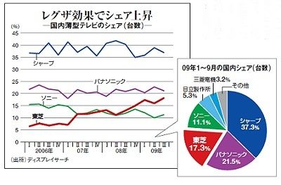薄型テレビは、登場してしばらくの間、パネルこそが商品競争力の源泉だった。シャープが亀山工場製を液晶パネルのブランドとして大成功したように、パネルは消費者へのわかりやすいアピールポイントであった。しかも、液晶テレビの原価の6割はパネル。その点で、自社単独でパネルを作っていない東芝の不利は否めなかった。(→下に続く)