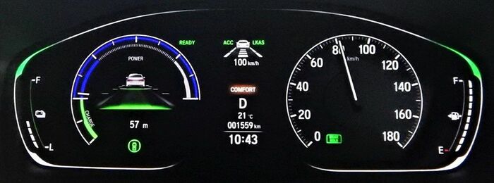 新型アコードのJC08モード値は先代同様の30.0 km/Lで、新型のみ記載のあるWLTC値は22.8 km/L。交通量が少なめで渋滞路にも遭遇しなかったため、カタログ値を若干上回る結果となった。
