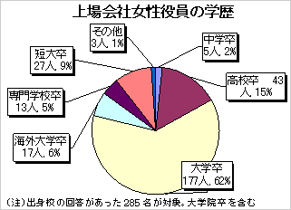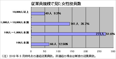一方、新卒として入社し役員となるプロパーの女性は109人で20.6%。06年の調査では126人、23.4%だったが今回は2.8ポイント減少した。プロパーの女性が社内で昇進することは依然として容易ではないようだ。