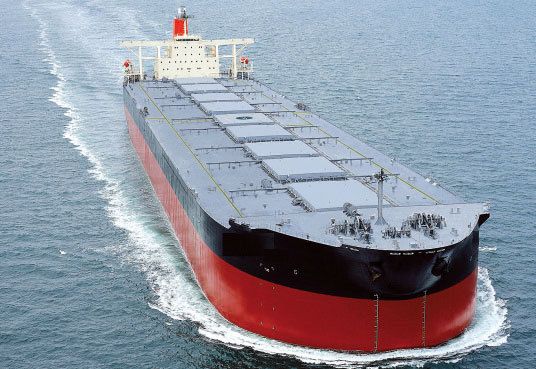 バラ積み船は穀物などの乾原料を運ぶ。中でも鉄鉱石や原料炭を運ぶケープサイズは載貨重量10万トン超と大きい。
