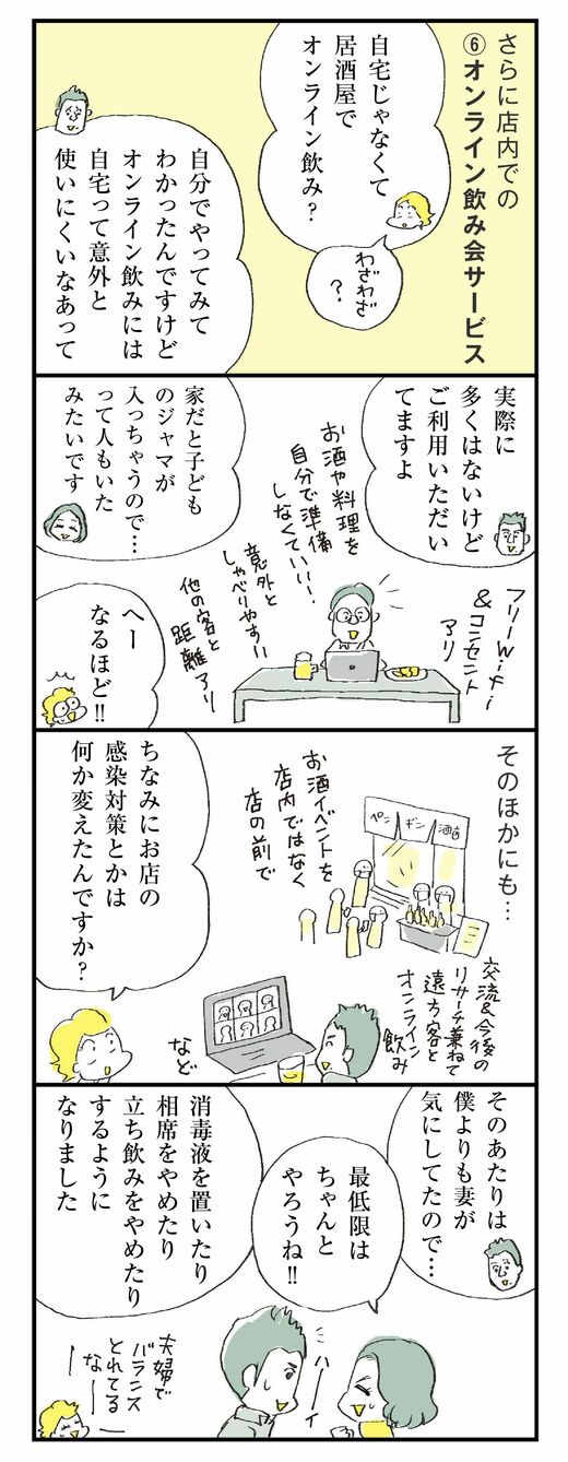 ライフ #ほしいのは「つかれない家族」 前の記事 次の記事 コロナに「めげない居酒屋」の明るすぎる超対応 「何でもやるぜ!」の精神が生む"アイデア" 3分で読める 公開日時:2020/06/14 05:25 ハラユキ イラストレーター、コミックエッセイスト フォロー 1/8 PAGES 2/8 PAGES 3/8 PAGES 4/8 PAGES 5/8 PAGES 6/8 PAGES オンライン飲みに「場」を提供! 次ページが続きます:【忘れてはいけない、大事なこと】 7/8 PAGES 8/8 PAGES