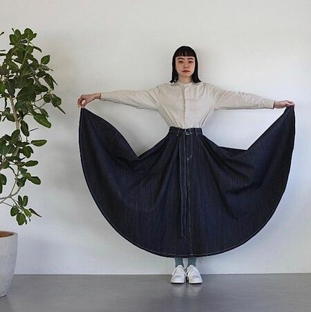 例えば、Aラインのシルエットを重視したスカート。なんと5mものデニム生地を使用しており、腰にズドンと重みを感じるほどだ。日常生活では、とても着づらい。