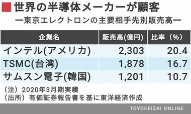 半導体を作るには基板となるシリコンウエハの形成からチップの切り出しまで400~600もの膨大な工程がある。それらに対応する装置を、複数の企業が役割分担していることから、各社のシェアが高いのが特徴だ。たとえばディスコはチップの切断装置でシェア7割超を誇る。事実上、世界中の半導体メーカーが顧客になるため、半導体市場の勢力図の変遷にかかわらず安定した経営ができることが特徴だ。