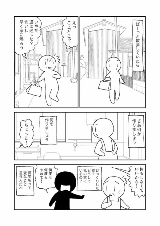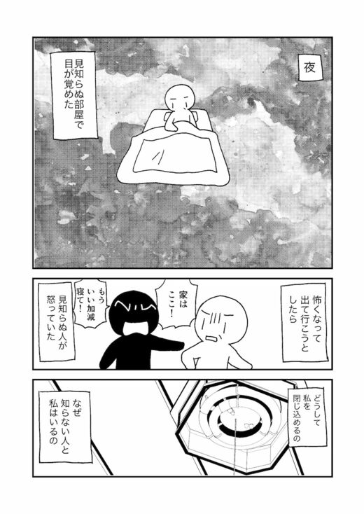 「夜中に見知らぬ部屋で目覚め、出ていこうとしたら知らない人(本当は娘や家族)に怒鳴られ恐怖を感じる」